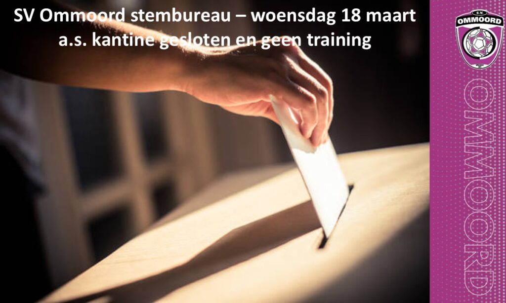 SV Ommoord stembureau – woensdag 18 maart a.s. kantine gesloten en geen training