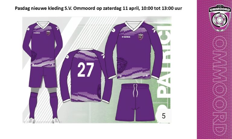 Pasdag nieuwe kleding S.V. Ommoord op zaterdag 11 april, 10:00 tot 13:00 uur